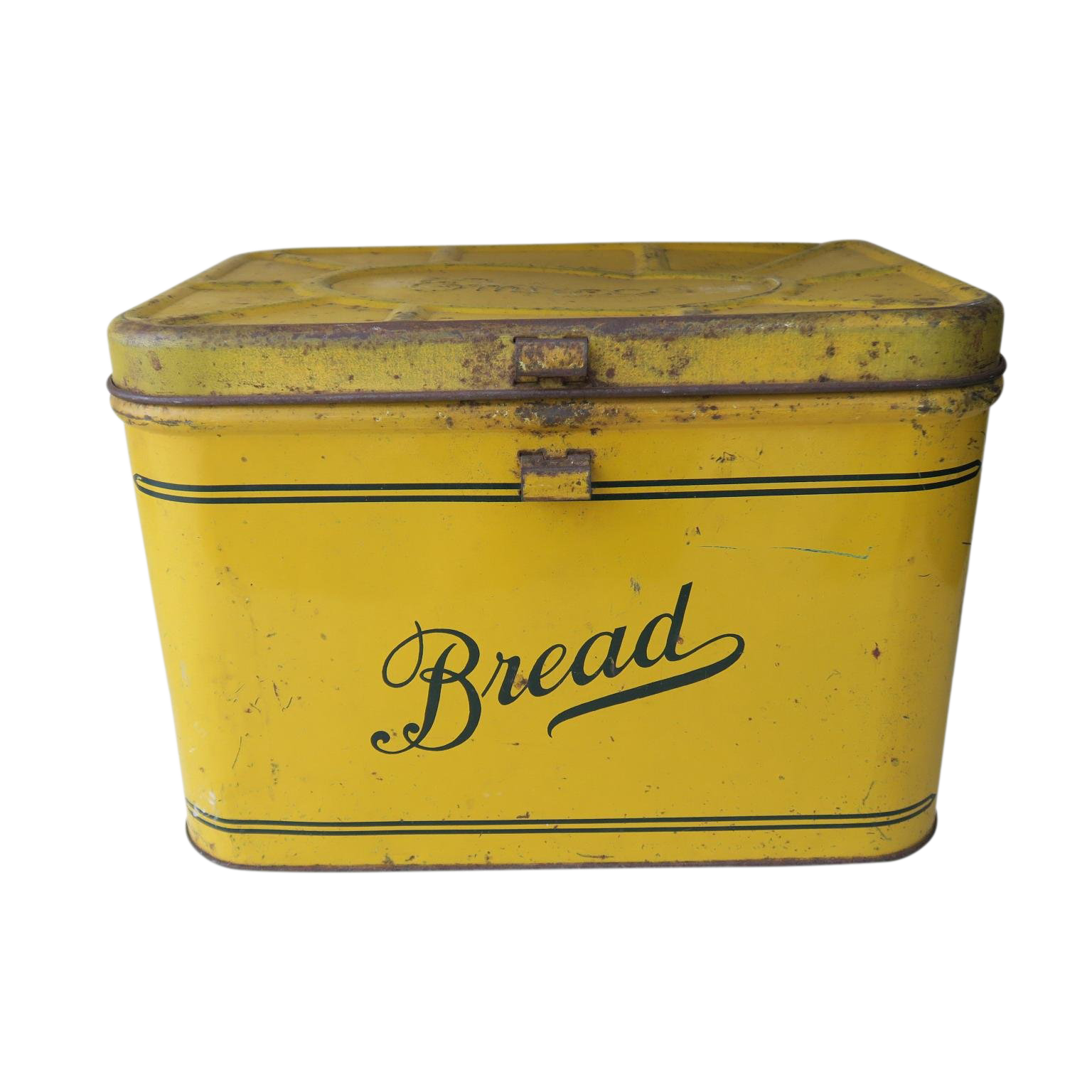 1940 S Era Metal Bread And Cake Box Yellow Garage Antiques
