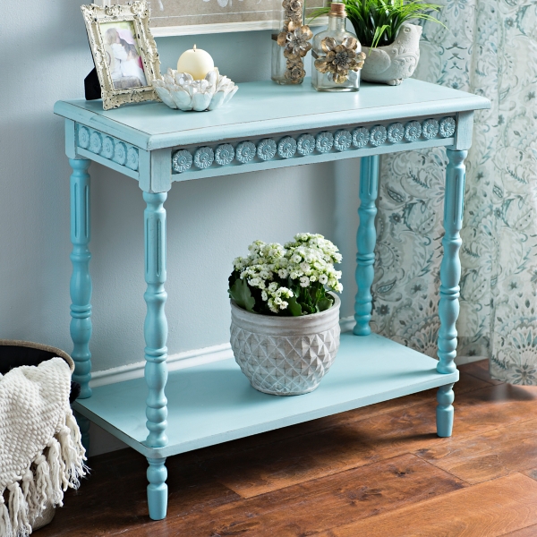 Wood Style Furniture Glancio Antique Oak And Teal Console Table