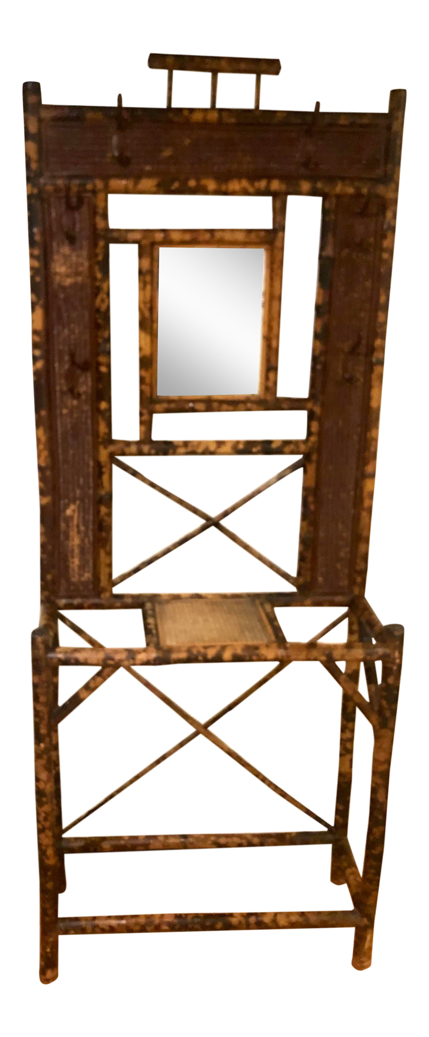 Antique Victorian Bamboo Hall Tree With Mirror And 6 Hangers