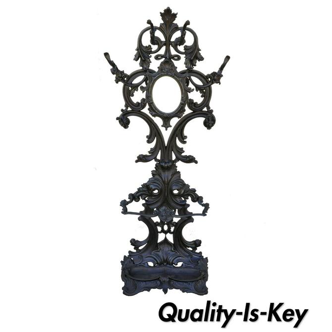 Antique French Rococo Victorian Cast Iron Hall Tree Coat Rack