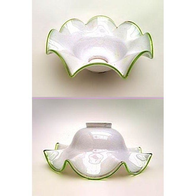 Vintage White Glass Lamp Shade Green Fluted Edge 6630 Ebay