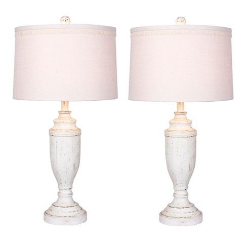 Distressed Formal Resin Table Lamps Cottage Antique White Fangio