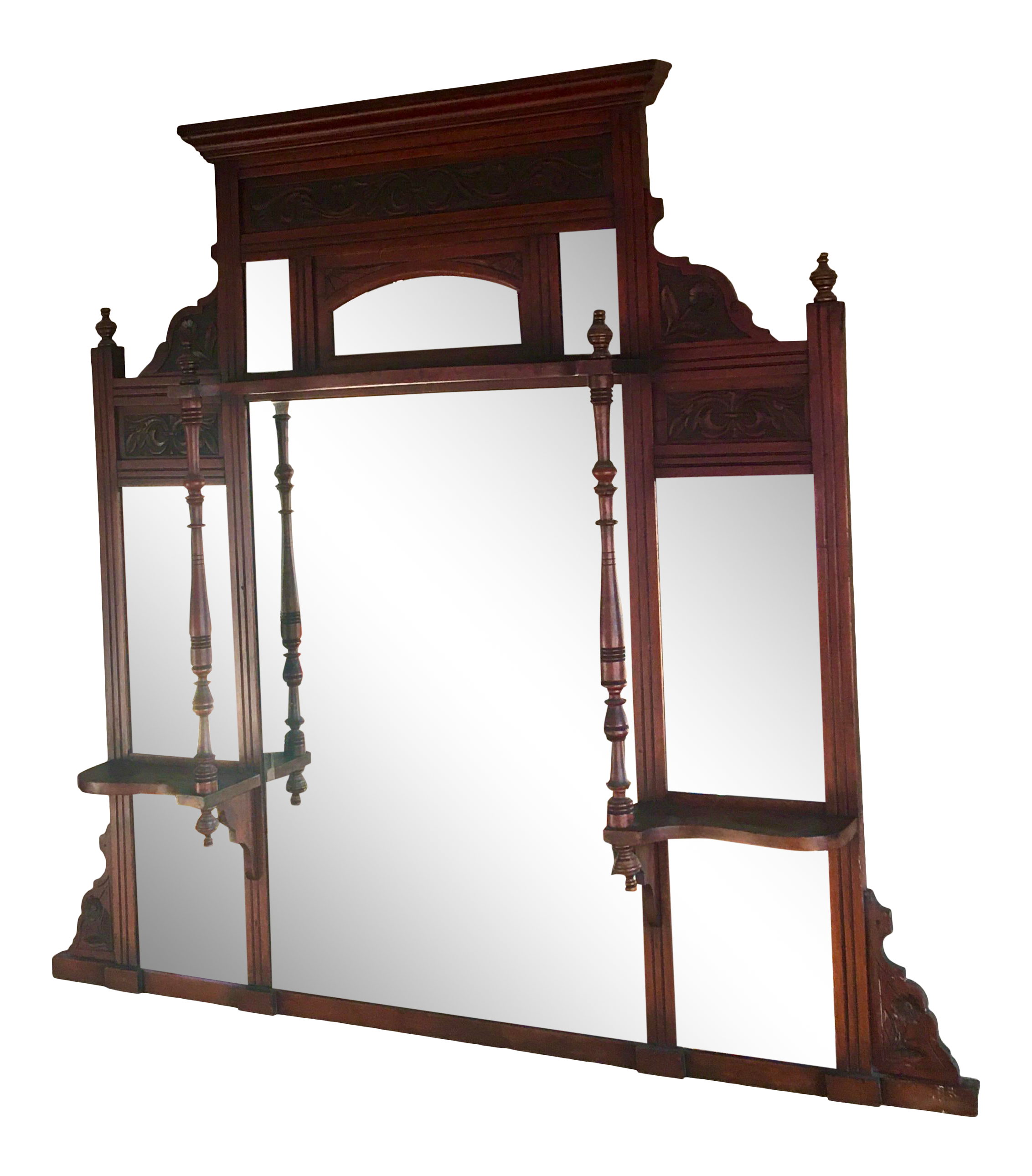 Antique Mirror Wall Shelf Large Beveled Mirror Victorian Wood Hand