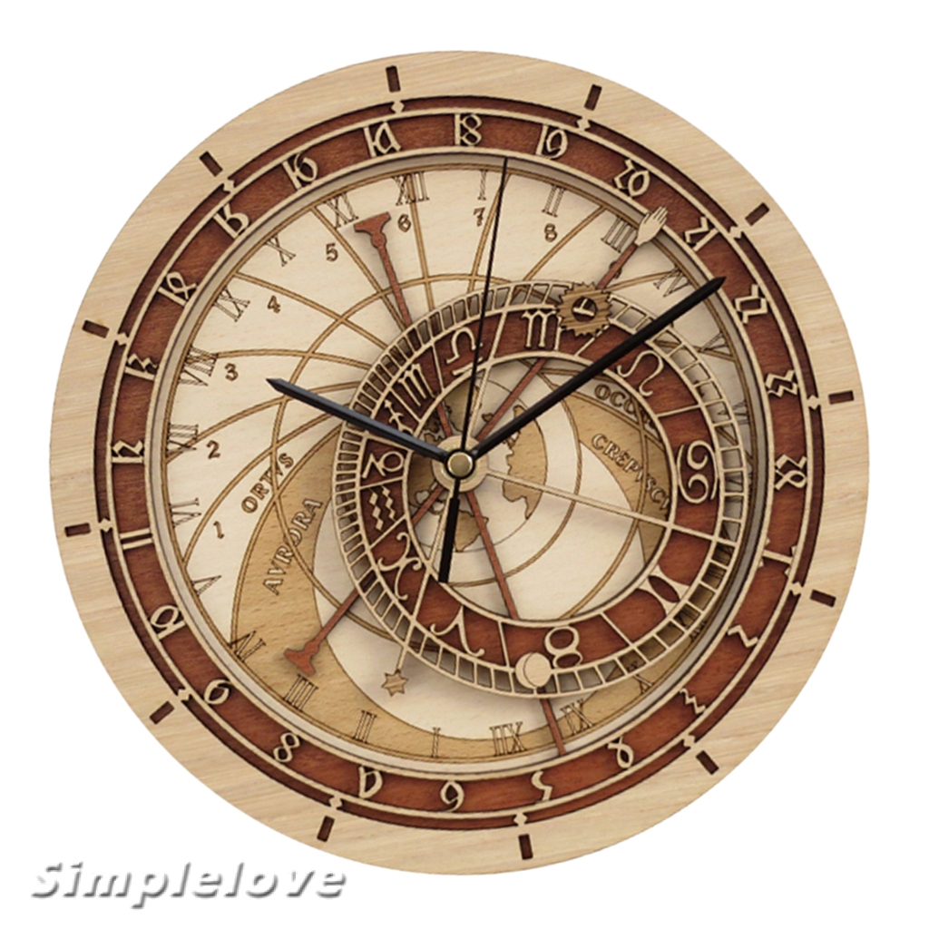 Wall Clock Vintage Wooden Noiseless Number Astronomical Clock 30cm