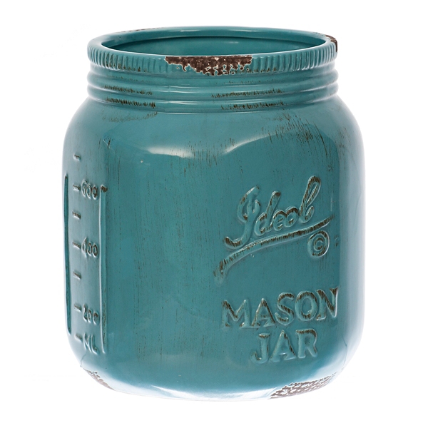 Mason Jar Aqua Blue Palais Essentials Ceramic Utensil Crock