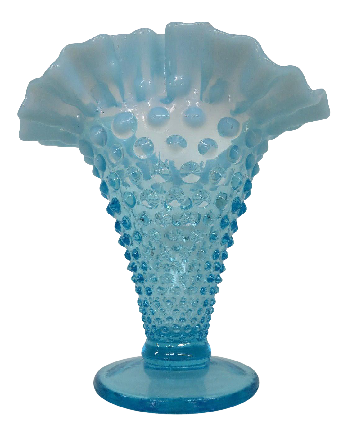 Fenton Hobnail Aqua Blue Opalescent Small Ruffled Vase Chairish