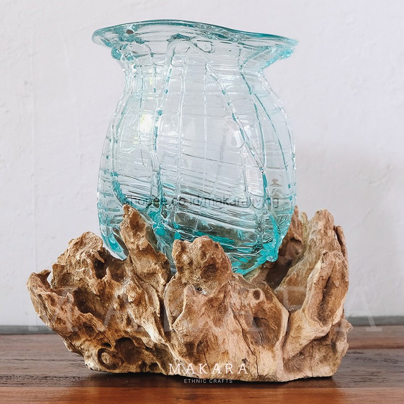 Molten Glass Vase Teak Root Sculpture Enchanted Planet
