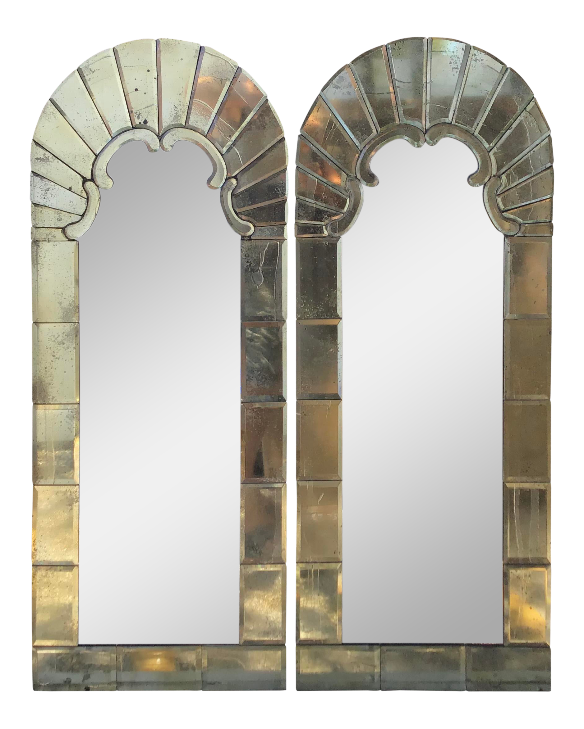 Pair Of Classic Arch Top Venetian Style Distressed Bevelled