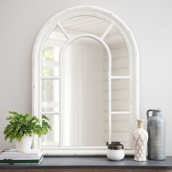 Jordana Distressed White Wood Arch Mirror Kirklands