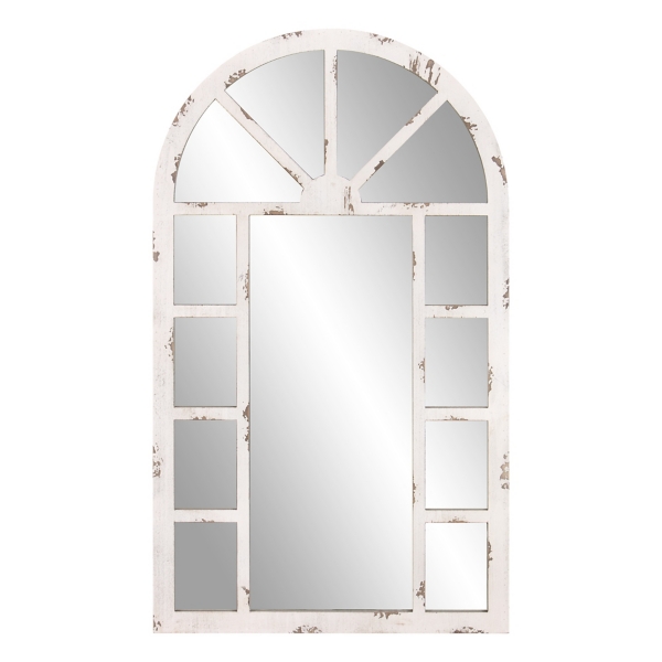 Distressed White Wood Arched Window Wall Mirror Farmhouse Wall