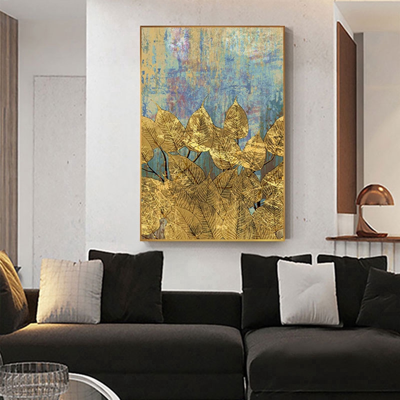 Wall Art For Living Room Abstract Golden Foil Leaf Painting Poster
