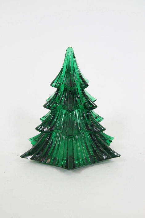Vintage Clear Green Crystal Christmas Tree Paperweight Art Glass