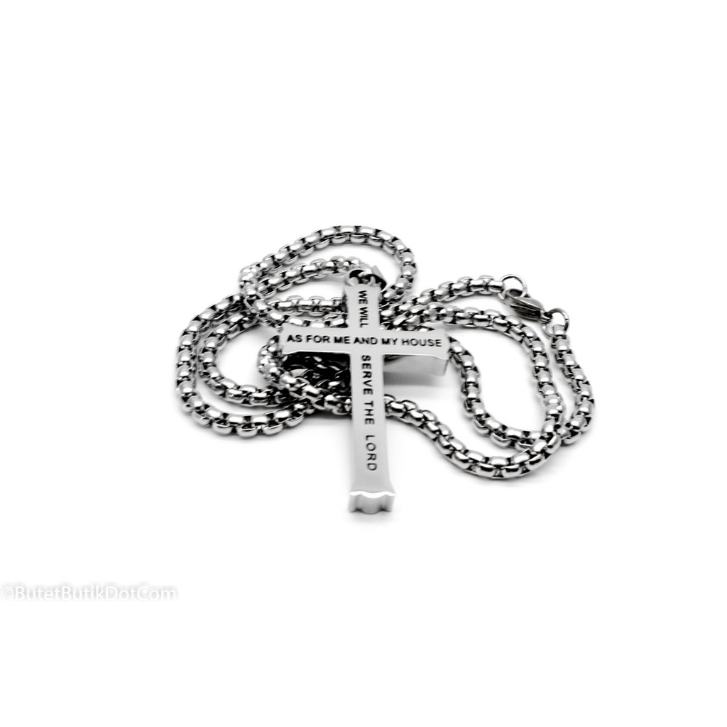 Kalung Salib As For Me And My House We Will Serve The Lord Pria