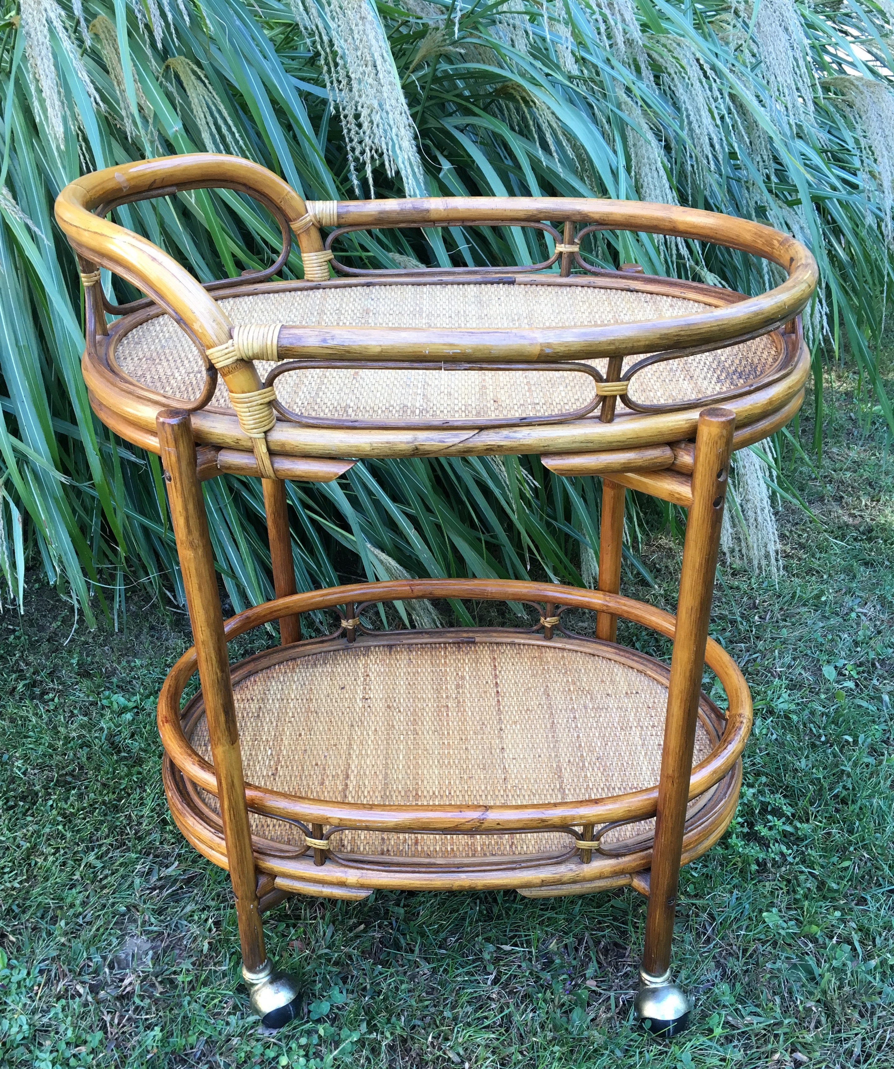 Best Vintage Bamboo Rattan Tea Bar Cart For Sale In Jefferson