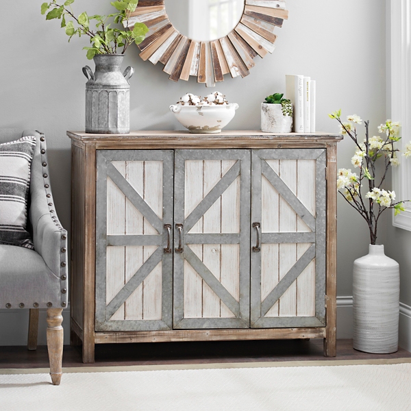 Galvanized Barn Door 3 Door Cabinet Kirklands